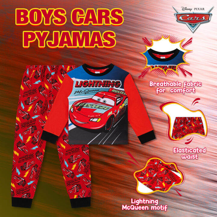 - OFFICIAL DISNEY CARS PYJAMAS – These boys’ Lightning McQueen pyjamas feature the iconic red race car from the hit Disney film Cars, perfect for young fans who love racing adventures. Officially licensed Disney merchandise ensuring premium quality and authentic detailing.