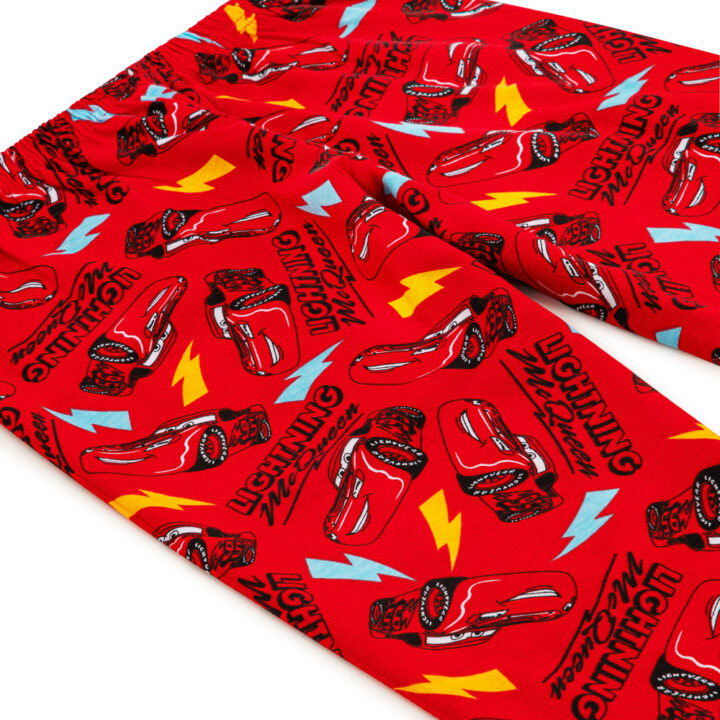 - FUN LIGHTNING MCQUEEN DESIGN – Eye-catching design showcasing Lightning McQueen speeding on the racetrack with bold “Rust-eze” and “95” graphics. The matching red trousers feature an all-over print for a complete character look that kids will love.