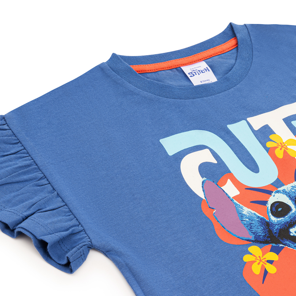 - 3 UNIQUE DESIGNS – Includes 1 floral all-over print, 1 “Cute Trouble” graphic tee and 1 tropical Stitch top with ruffle sleeves – fun mix for any wardrobe.