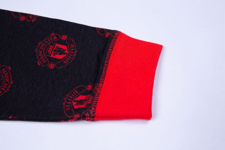These Manchester United pjs for boys and girls consist of a long sleeve top and bottoms with an elasticated waistband for extra comfort. The top has a polyester front panel with the Man Utd logo on it along with a very cool design. The bottoms have an all over print of the MUFC badge.