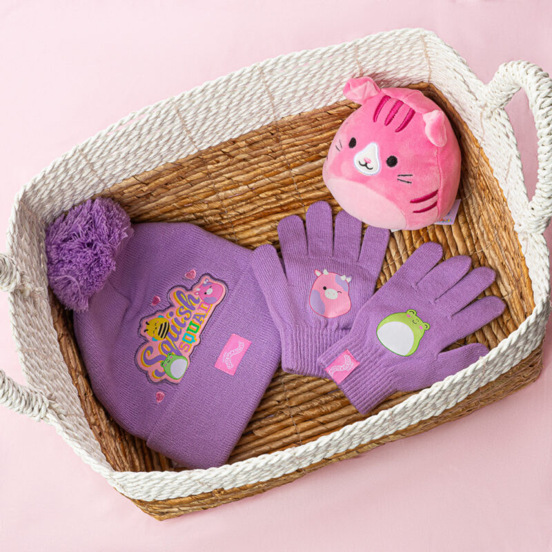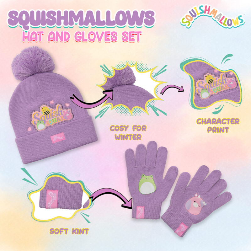 - SQUISHMALLOWS WINTER HAT & GLOVES SET : adorable Squish Squad artwork on a cosy bobble beanie and matching gloves — perfect for fans.