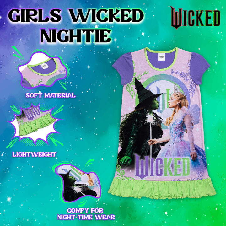 - Official merchandise: Licensed Wicked girls nightdress featuring Elphaba and Glinda in a bold, high-definition print—perfect for fans of the hit musical/film. Ideal girls’ nightwear for cosy bedtimes, sleepovers and lounging at home.
